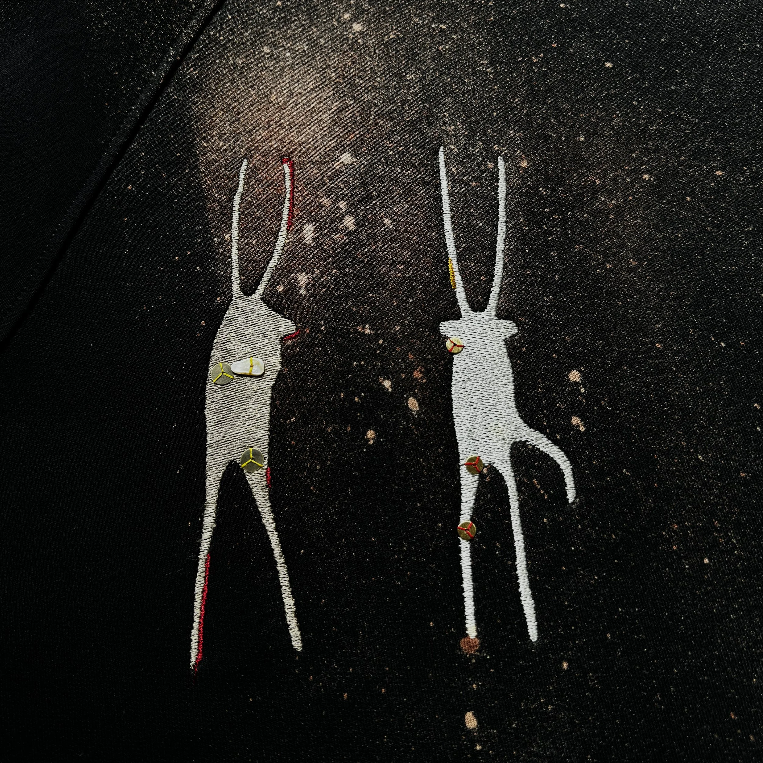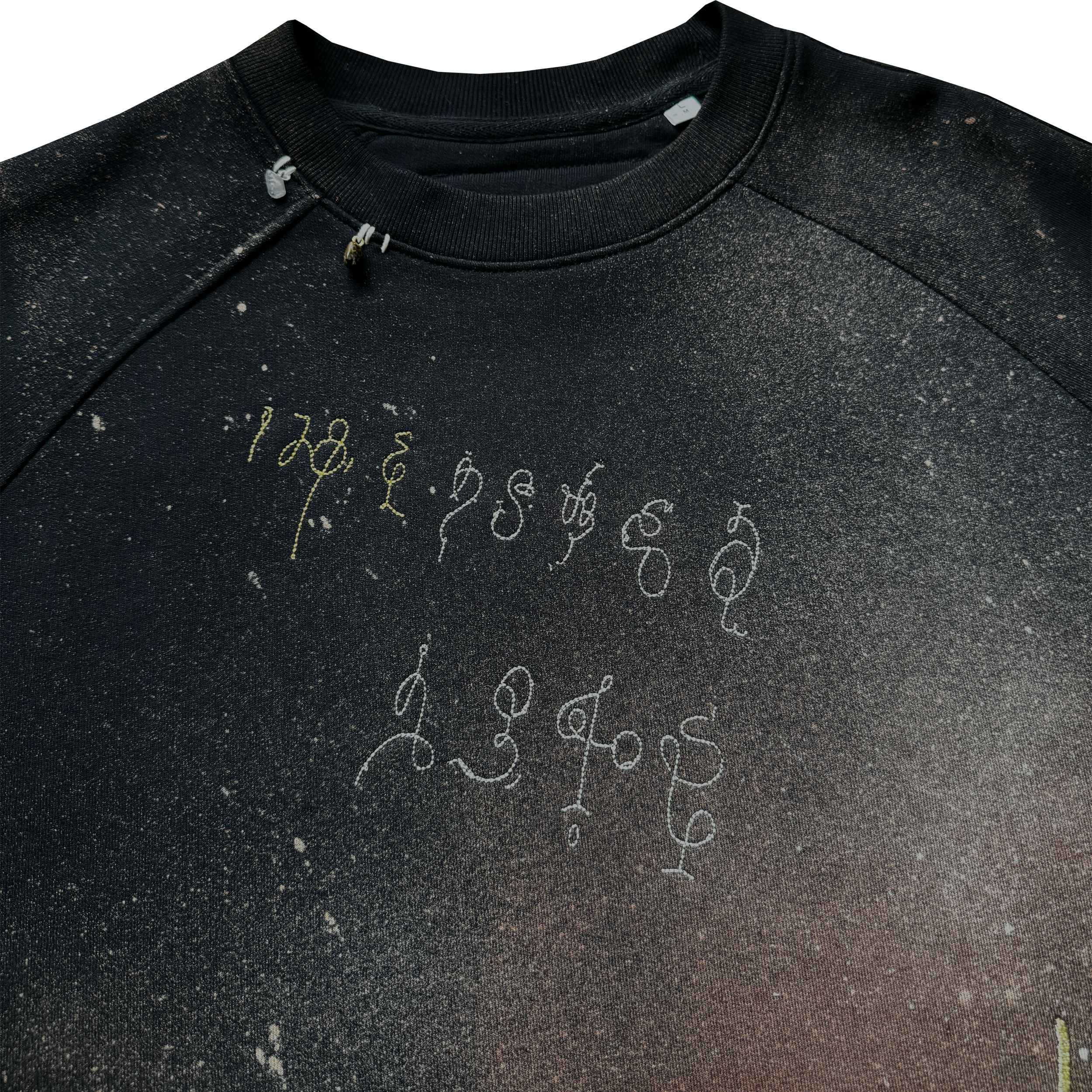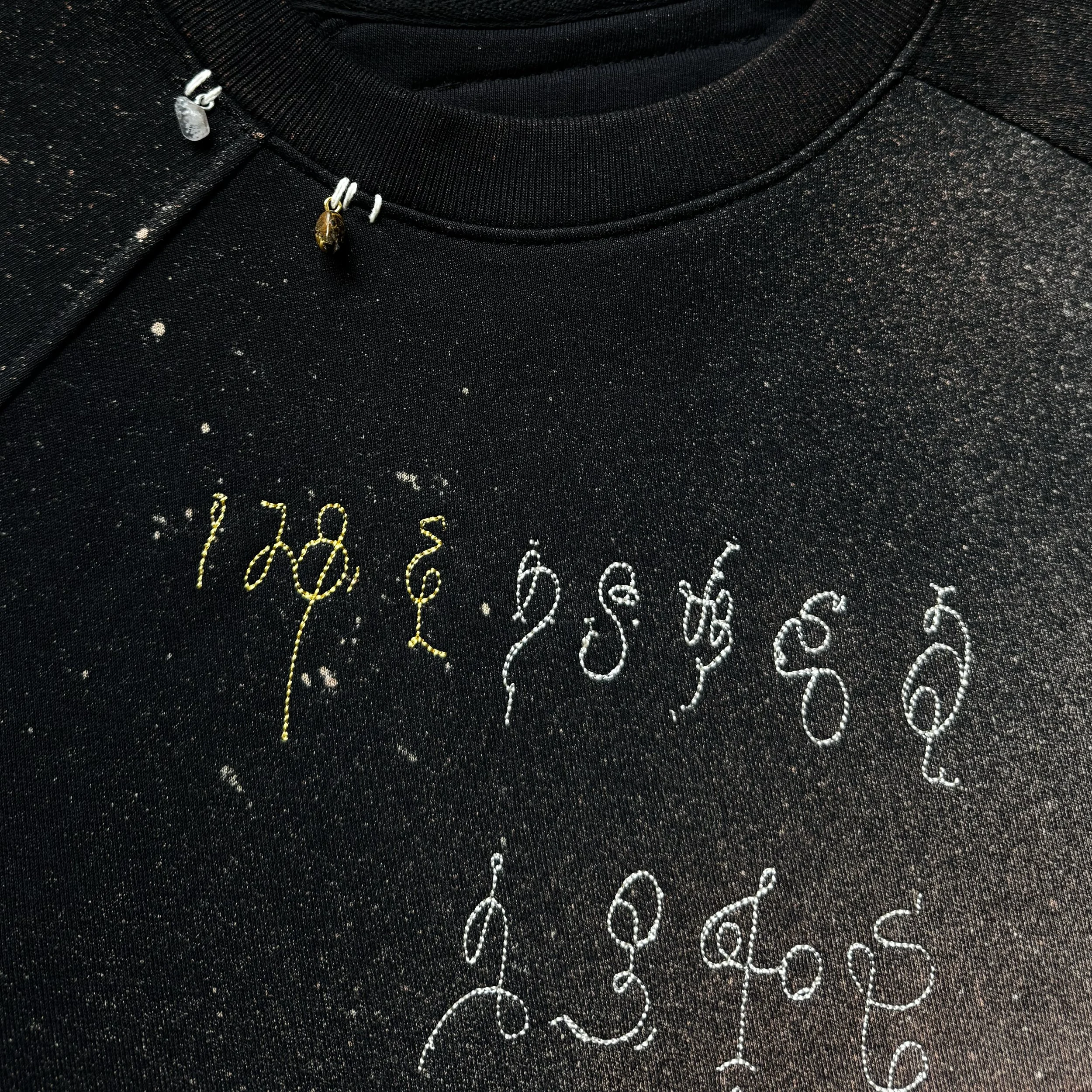 Celestial stones—lapis lazuli for insight, agate for balance, tiger’s eye for courage, and lava stone for grounding—are carefully placed to amplify the pullover’s resonance, making each piece a personal talisman for the soul who wears it.